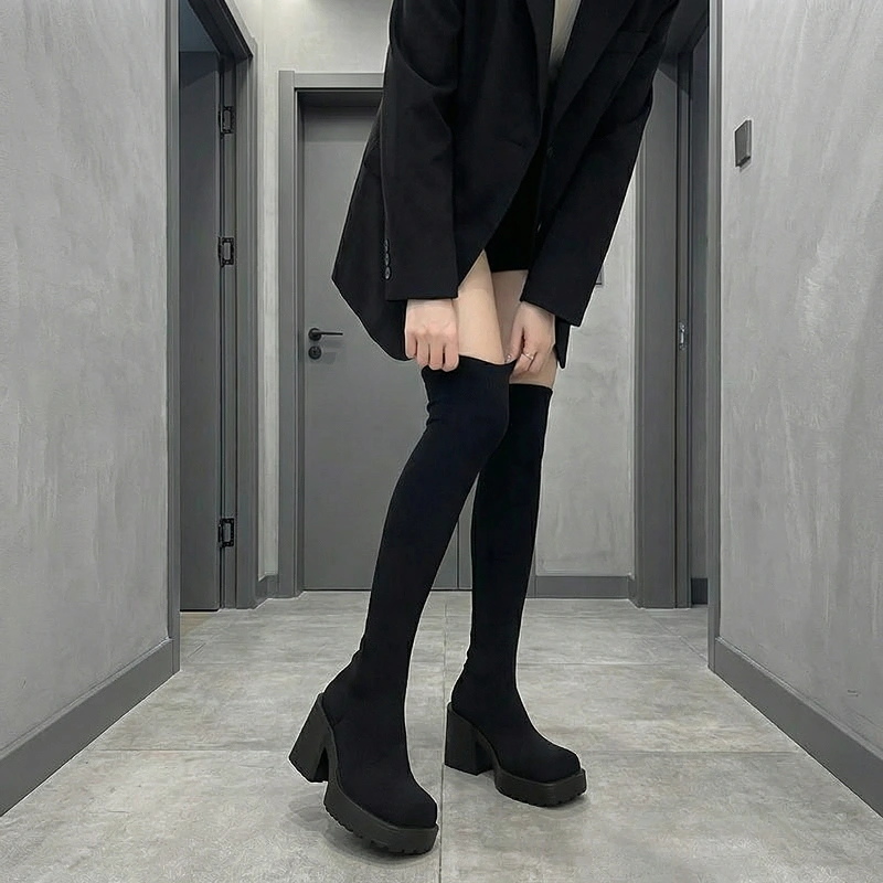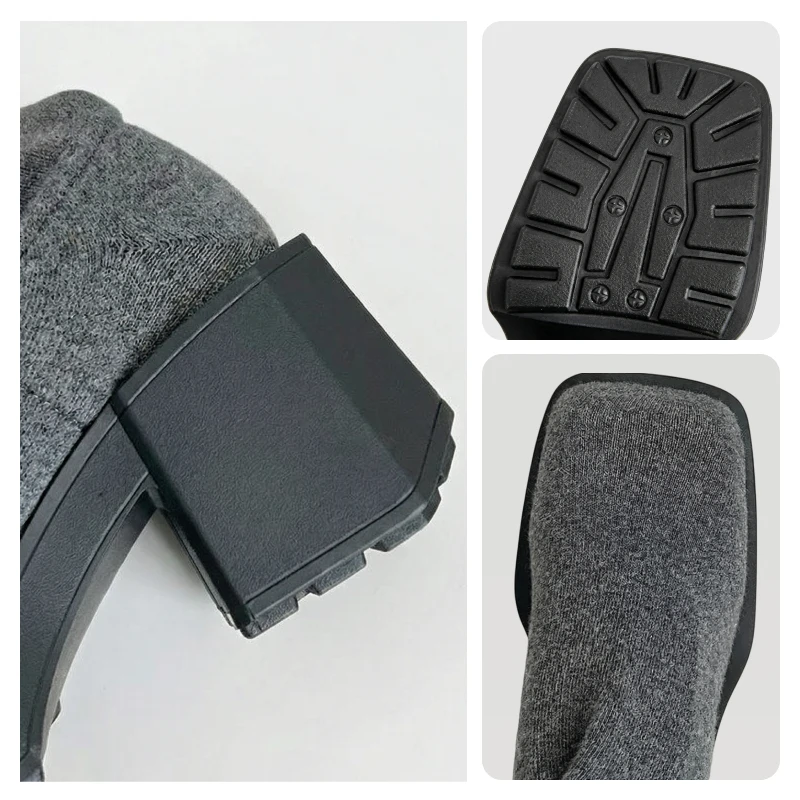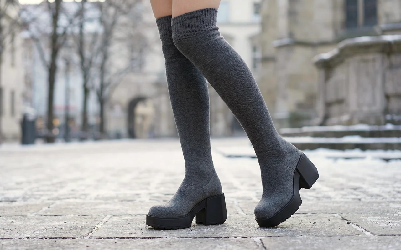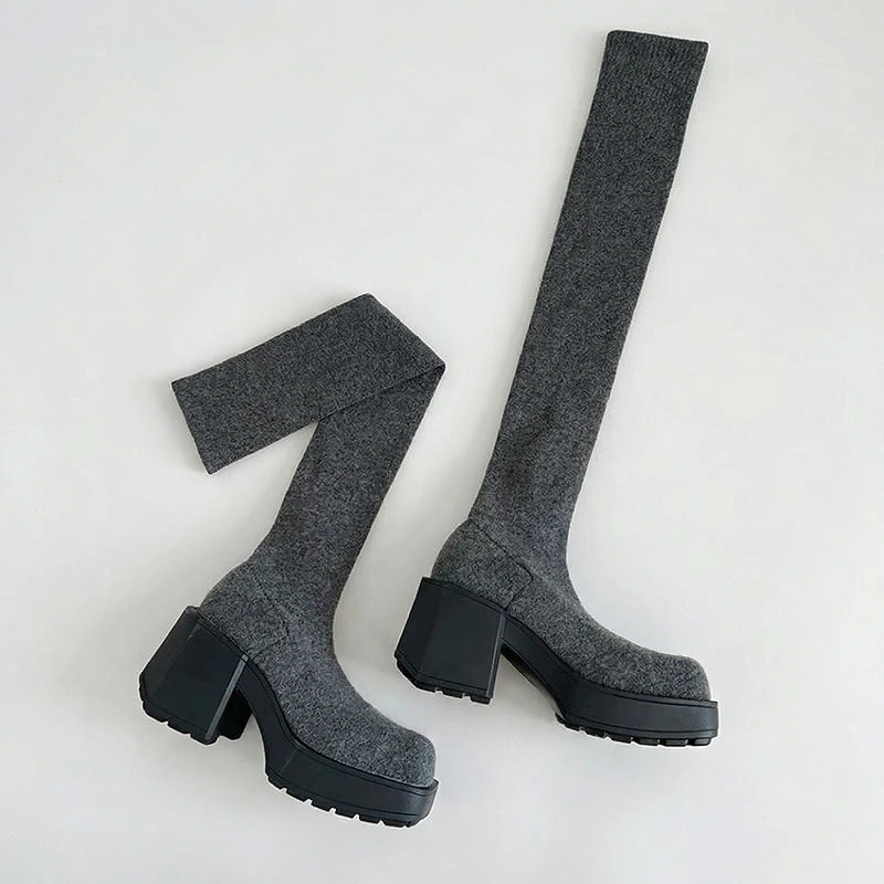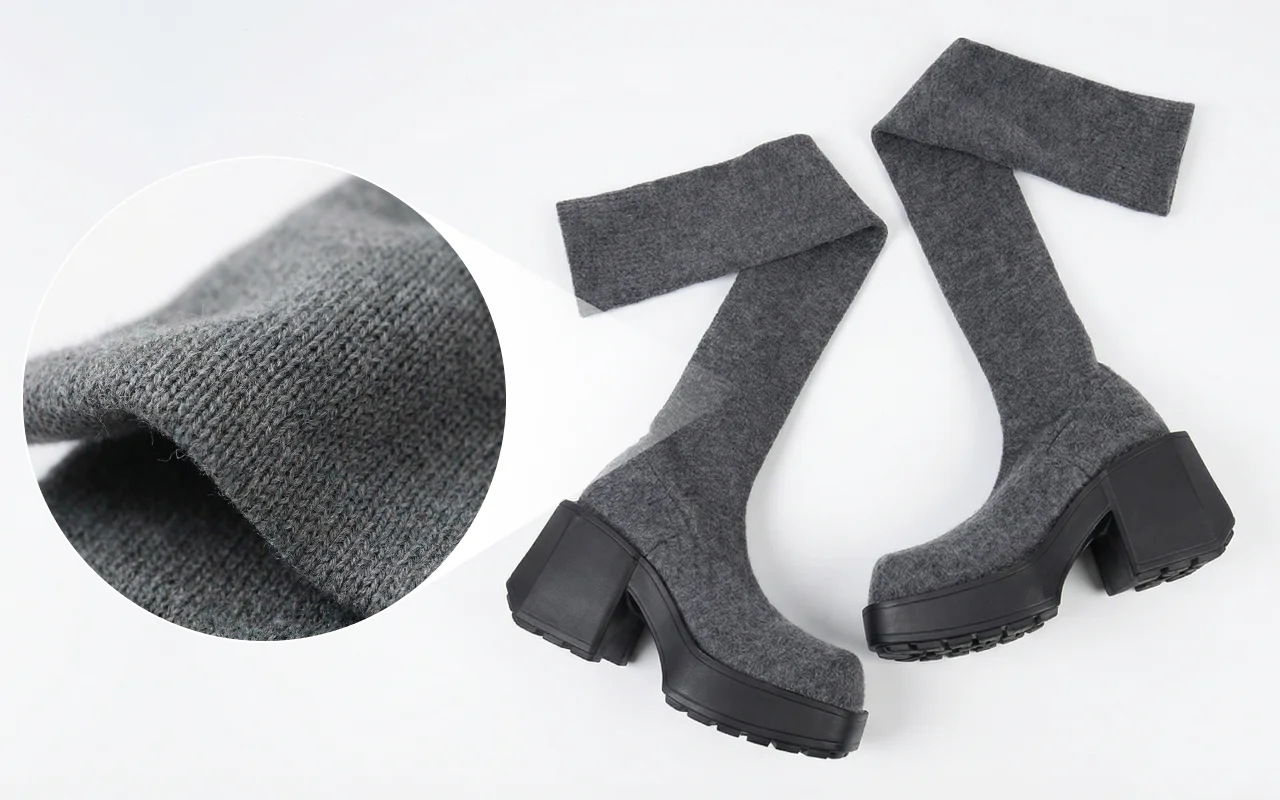 Das dicke, gestrickte Obermaterial hält Beine und Füße draußen warm. Plateau schützt vor nassen Gehwegen und kaltem Wetter.