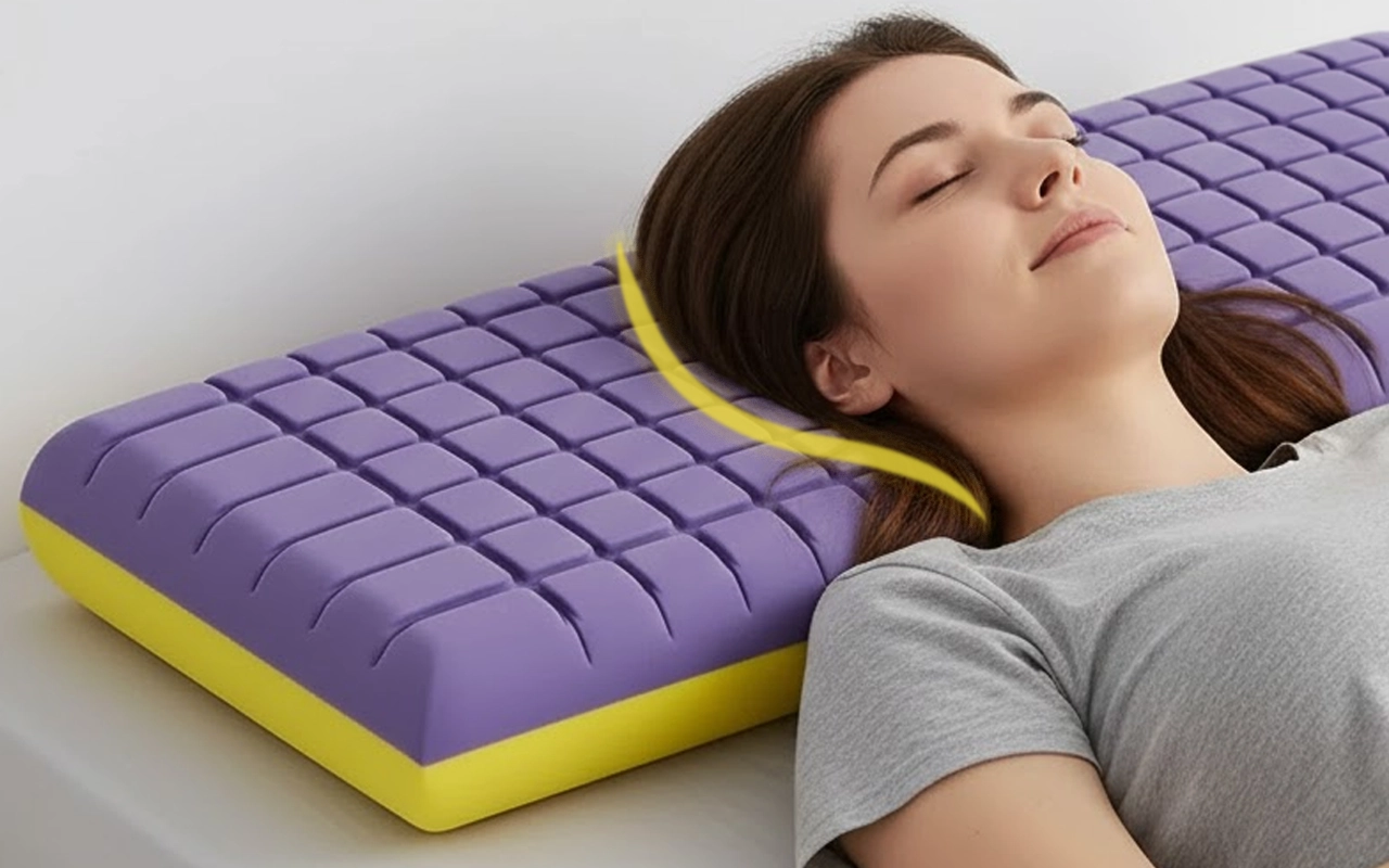 Ortorex Memory-Schaum passt sich sanft eine natürliche Ausrichtung an. Der Druck auf Gelenke und Muskeln wird für besseren Schlaf reduziert.
