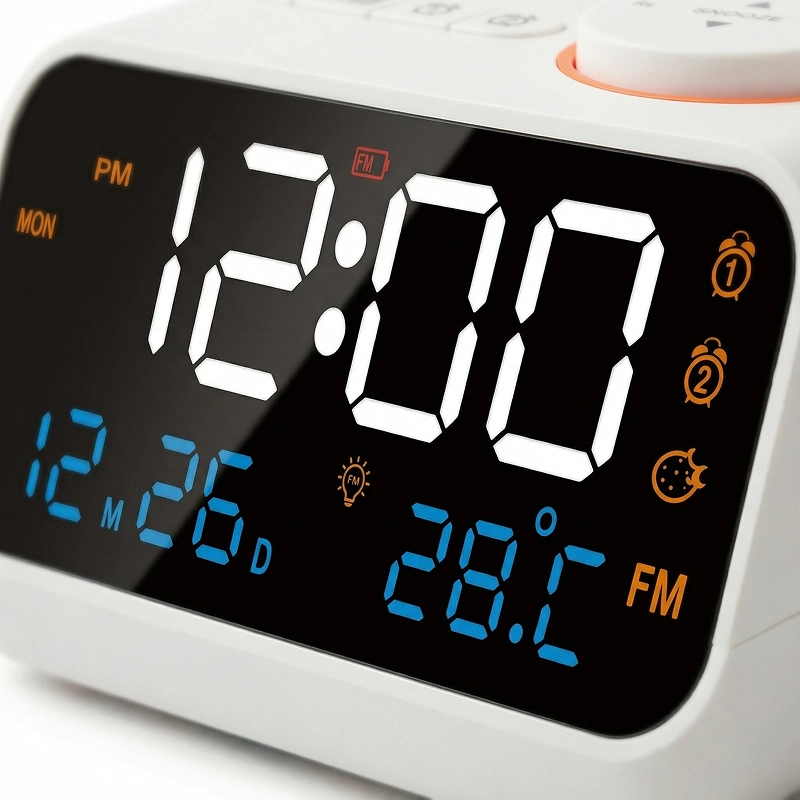 Ich reise beruflich viel und habe diese Uhr in mein kleines Apartment mitgenommen. Sie hilft mir mit Datum und Uhrzeit, organisiert zu bleiben, und das Radio macht die Morgen weniger einsam.