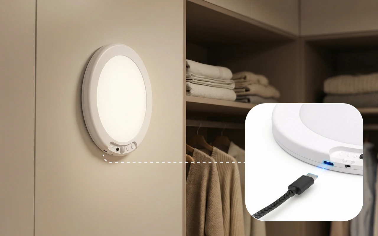 Kein Herumtasten nach einem Schalter mehr! Erkennt sofort, wenn ich den Raum betrete, und leuchtet sofort auf. Das Aufladen per USB ging auch sehr schnell.