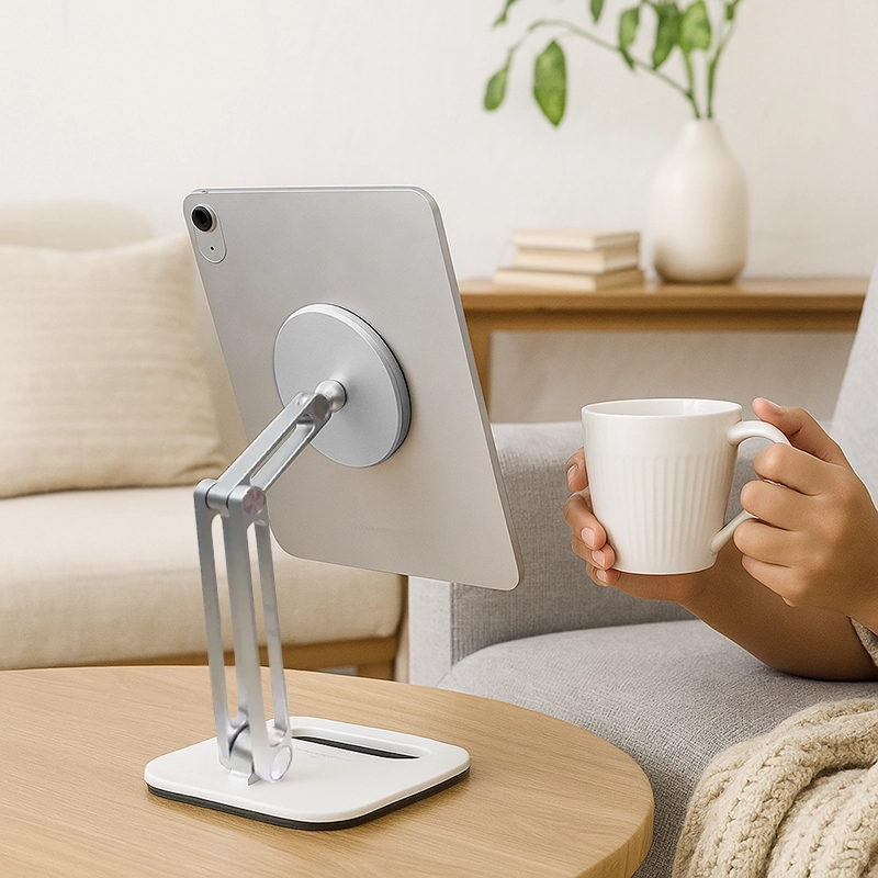 Flexible Gelenke ermöglichen Kippen oder Drehen nach Bedarf. Finden Sie immer die perfekte Position zum Lesen, Zeichnen oder für Videoanrufe.