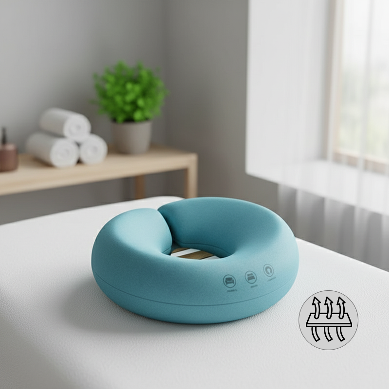 Ich schwitze immer bei Massagen, aber die Luftzirkulation hält alles frisch. Das Kissen bleibt kühl und mein Gesicht wird nicht unangenehm gedrückt.