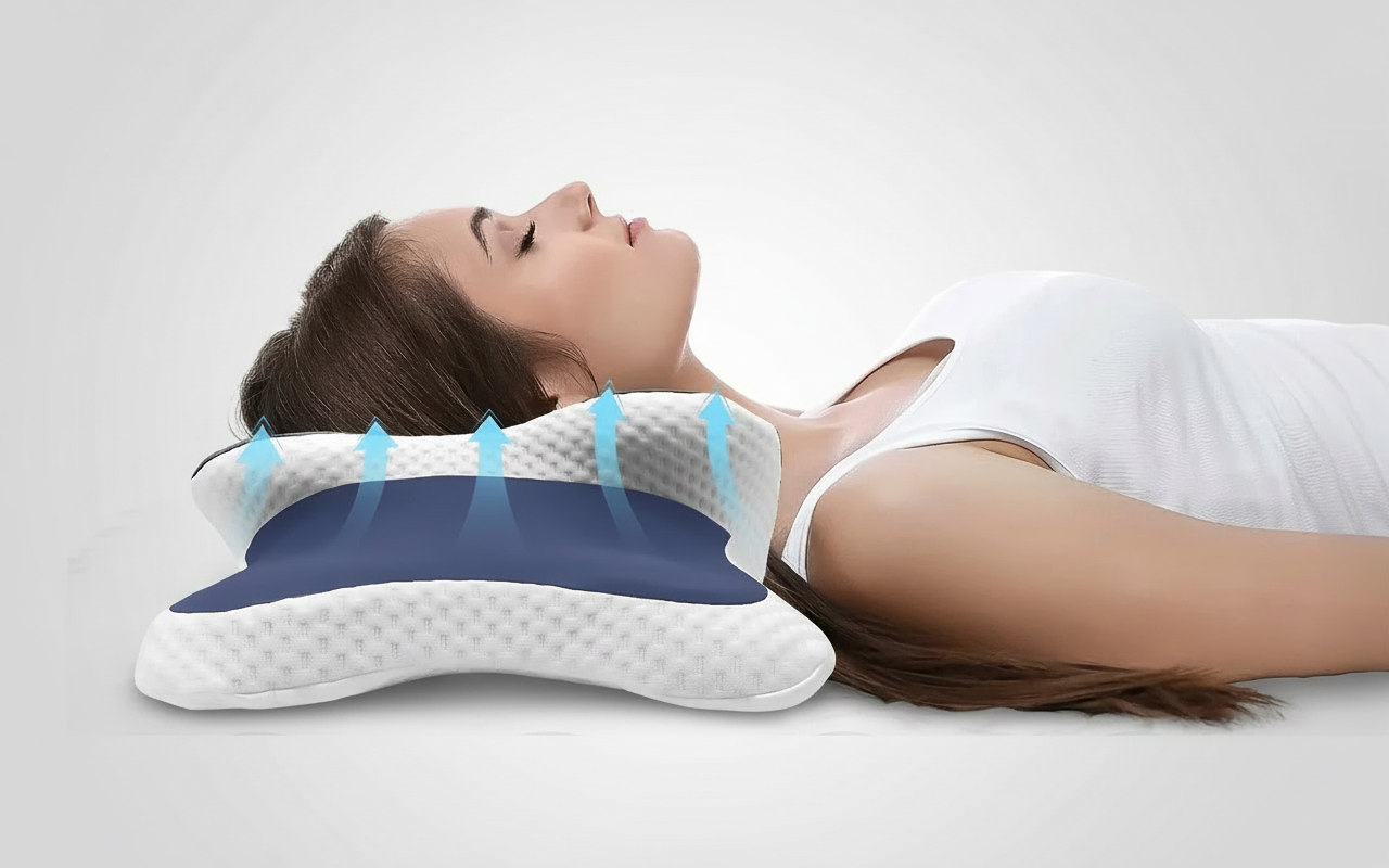 Stützender Schaum umschließt Ihren Kopf, ohne einzusinken. Erwachen Sie jeden Morgen ohne Schmerzen oder Muskelkater.