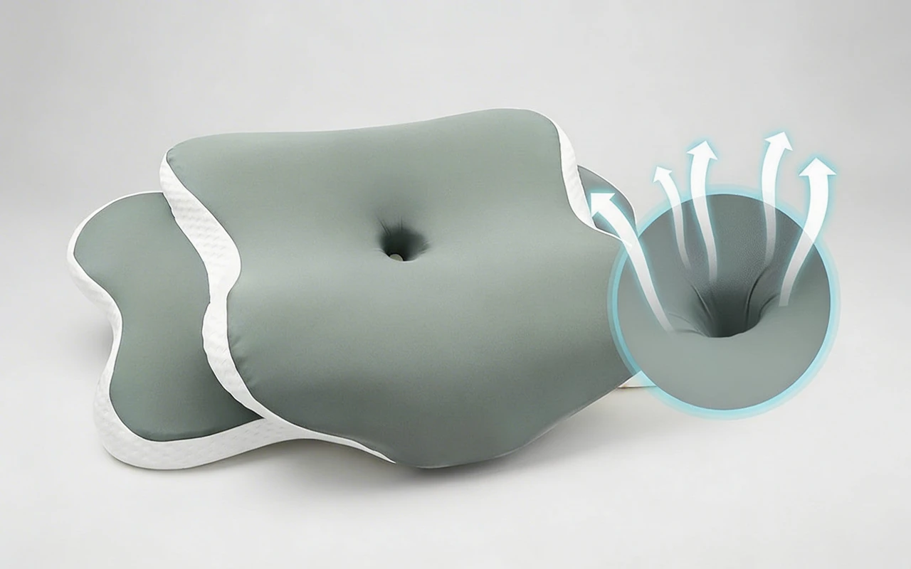 Luft strömt leicht durch das Kissen, um Überhitzung in der Nacht zu vermeiden. Frische und Komfort bleiben für Stunden ungestörter Ruhe erhalten.
