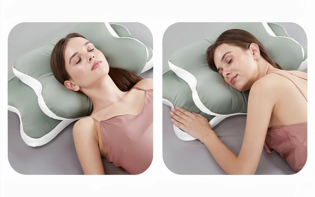 Ich liebe dieses Kissen wirklich sehr! Es stützt meinen Nacken so gut und ich wache jetzt ohne Schmerzen auf. Ich schlafe auf der Seite und auf dem Bauch und es funktioniert in beiden Positionen super.