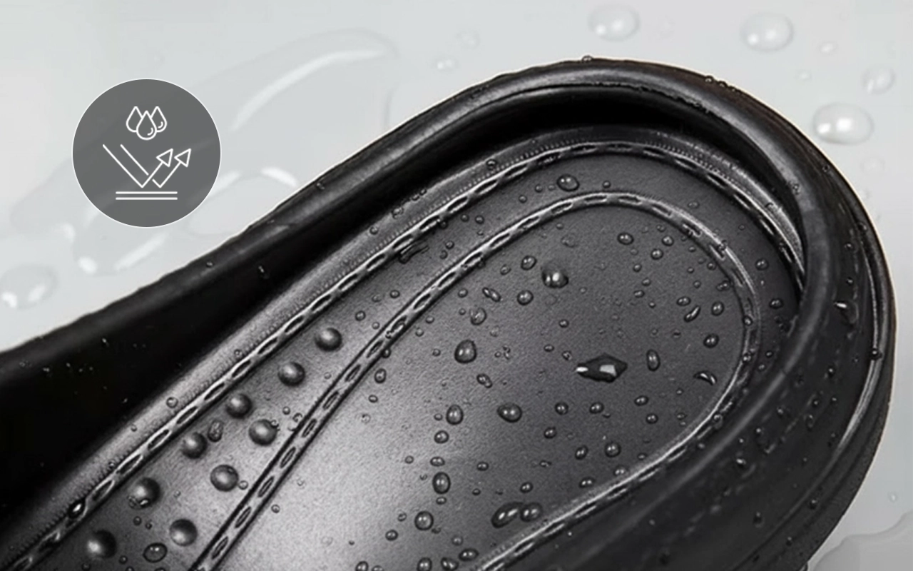 Habe sie in meinem Küchenjob ausprobiert – kein Ausrutschen oder nasse Socken während der ganzen Schicht. Bequem zu laufen und schnell anzuziehen. Sehen außerdem schick aus.