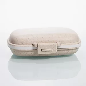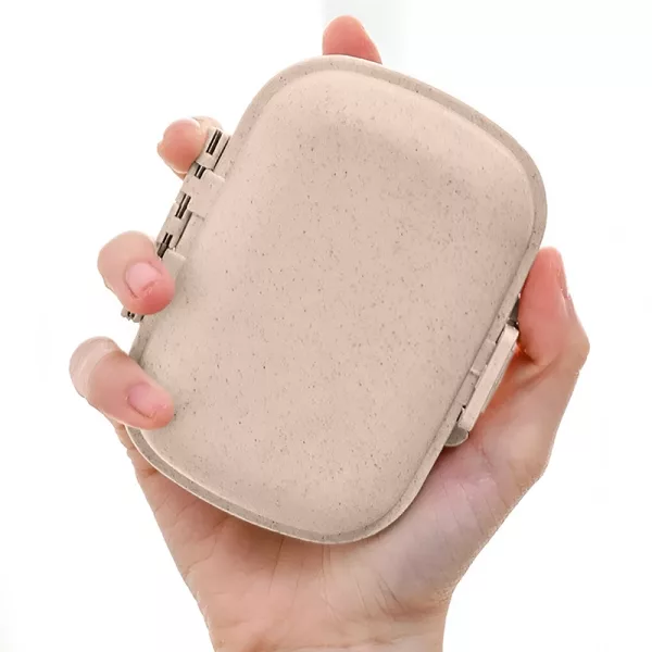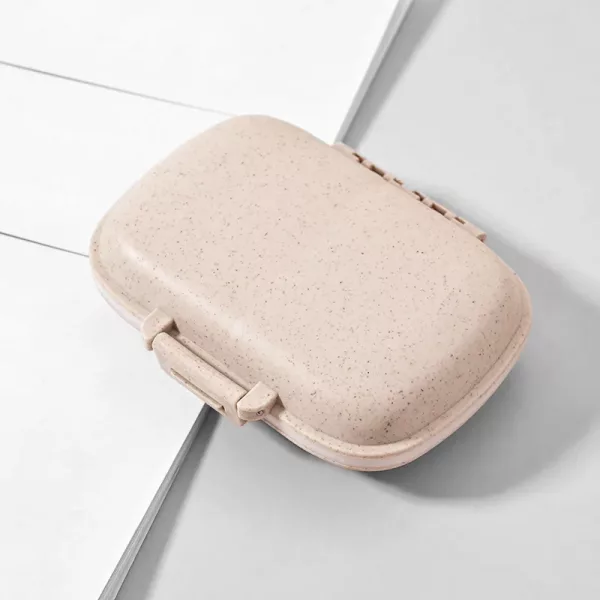 Diese kleine Pillendose fasst alle meine Medikamente für eine Woche. Die sicher einrastenden Fächer sorgen dafür, dass nichts ausläuft, selbst im vollen Koffer.