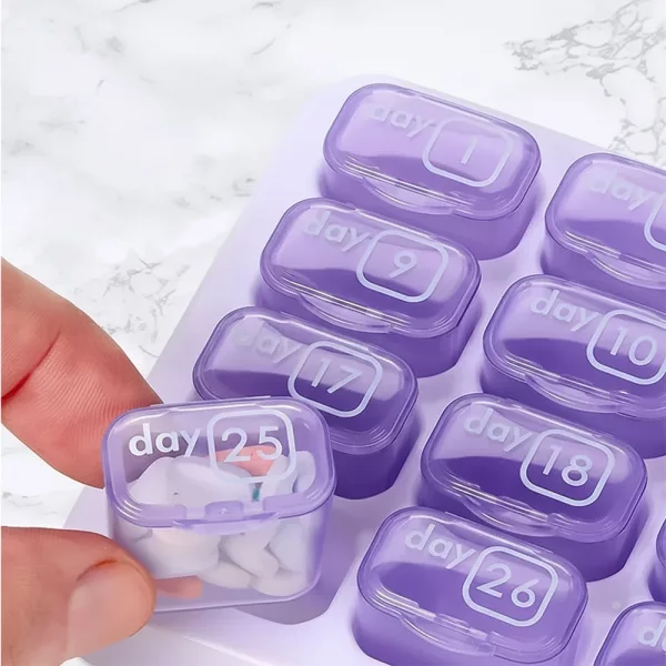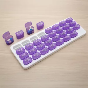 Nie wieder Sorgen machen, eine Dosis zu verpassen oder durcheinanderzukommen. Jedes Fach ist für das richtige Datum markiert.