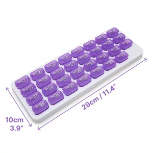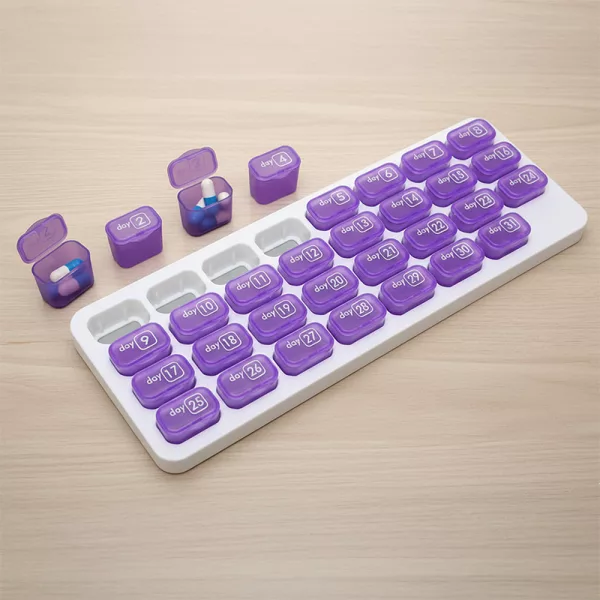 Übernehmen Sie die Kontrolle über Ihre täglichen Dosen mit einfach nummerierten Fächern. Ortorex macht die Aufbewahrung von Vitaminen und Medikamenten für alle einfach. Planen Sie 31 Tage im Voraus ohne Verwirrung oder Stress. Jedes Fach hält alles sichtbar, sicher und geschützt für den ganzen Monat.