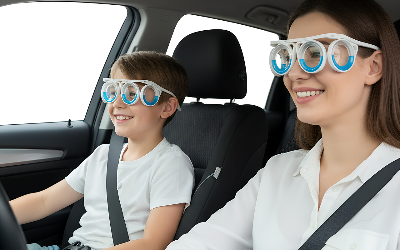 Genießen Sie eine ruhige Fahrt nach nur Minuten. Diese Brille wirkt schnell gegen Übelkeit während der Fahrt.