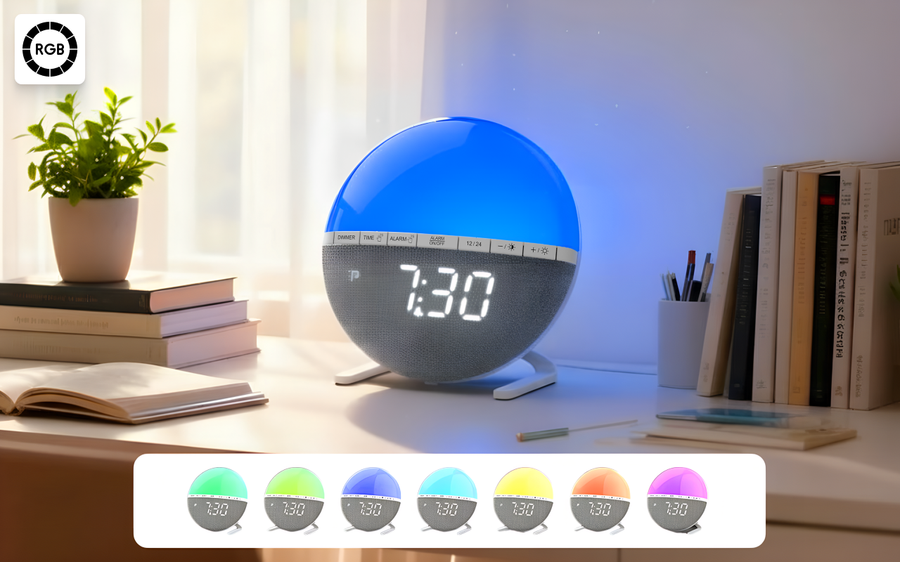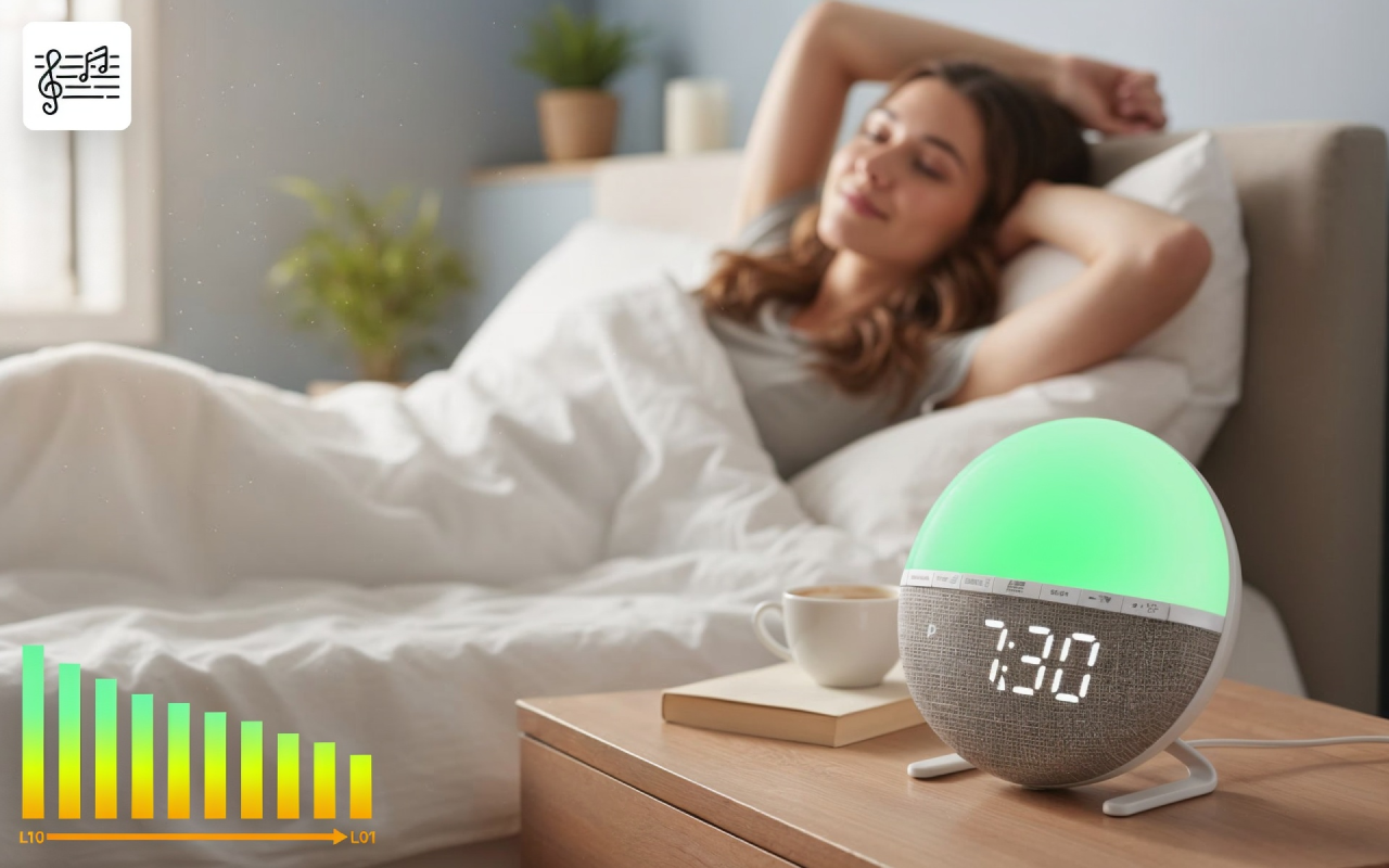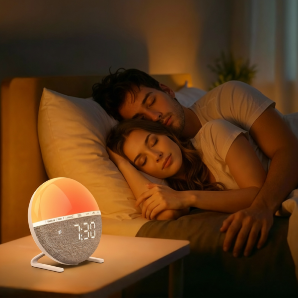 Wählen Sie aus sieben entspannenden Klängen oder nur dem Sonnenaufgangslicht. Zehn Lautstärkestufen sorgen dafür, dass jeder seine perfekte Morgenroutine findet.
