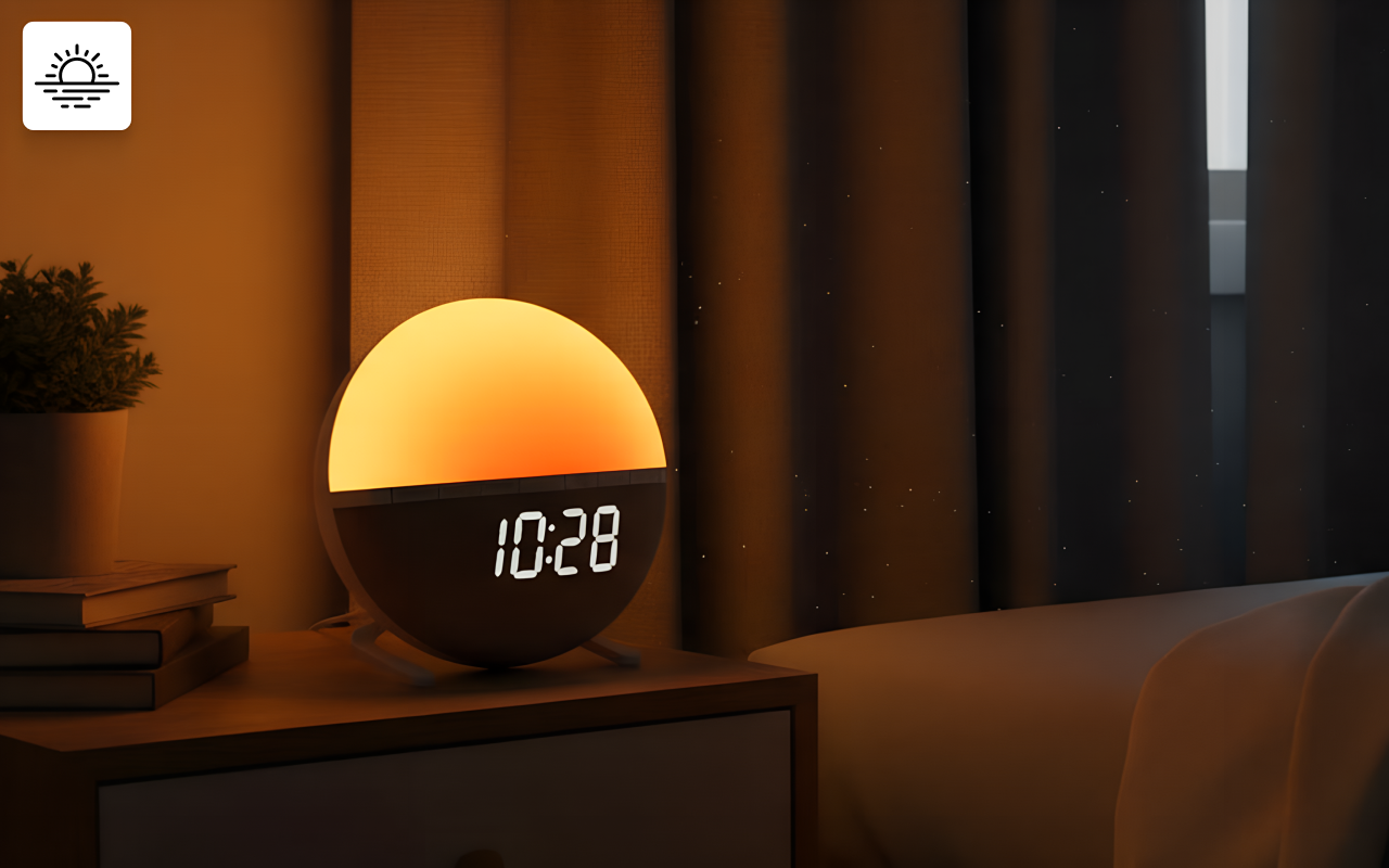 Der Ortorex Wecker nutzt sanfte Farben, die langsam heller werden. So fühlt sich Ihr Körper jeden Morgen ruhig und energiegeladen.
