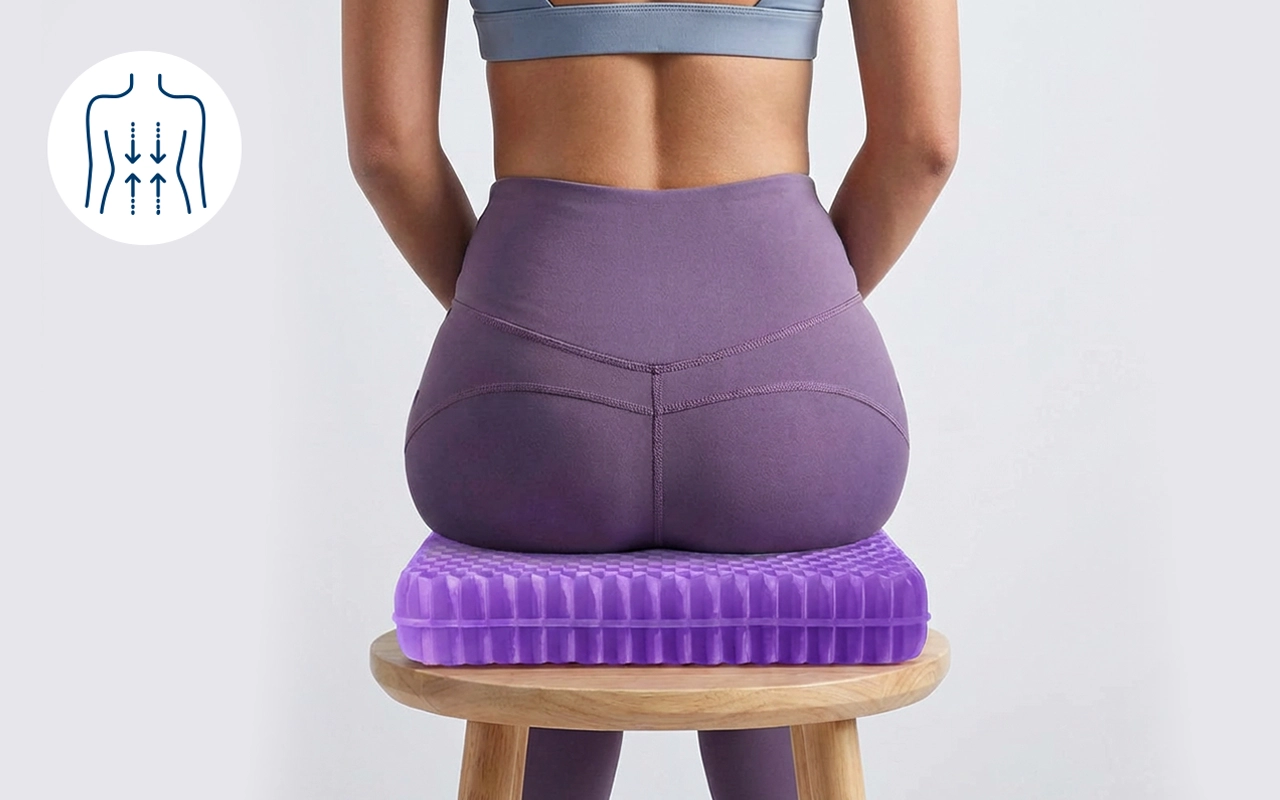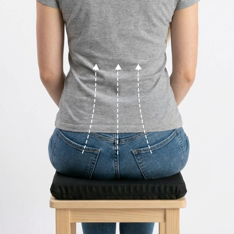 Gleichmäßige Gewichtsverteilung reduziert Unbehagen durch langes Sitzen. Spüren Sie weniger Belastung im unteren Rücken und Steißbein.