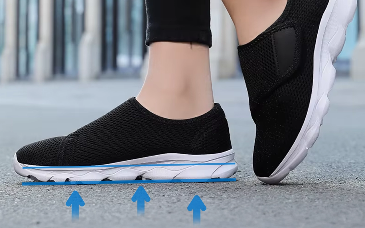 Jeder Schritt fühlt sich weich an dank der flexiblen Sohlendesign. Schmerzende Fersen und Fußgewölbe werden beim Gehen sanft entlastet.