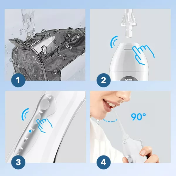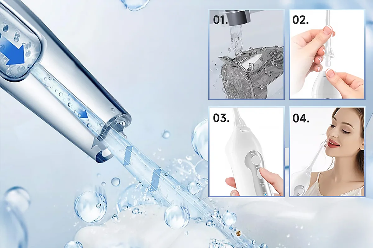 Dieser Wasserflosser wirkt Wunder! Meine Zähne fühlen sich so sauber an und mein Atem ist den ganzen Tag frischer. Ich liebe die einstellbaren Einstellungen.