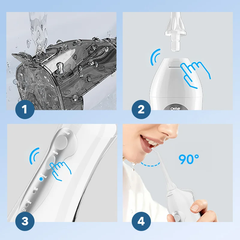 Dieser Wasserflosser wirkt Wunder! Meine Zähne fühlen sich so sauber an und mein Atem ist den ganzen Tag frischer. Ich liebe die einstellbaren Einstellungen.