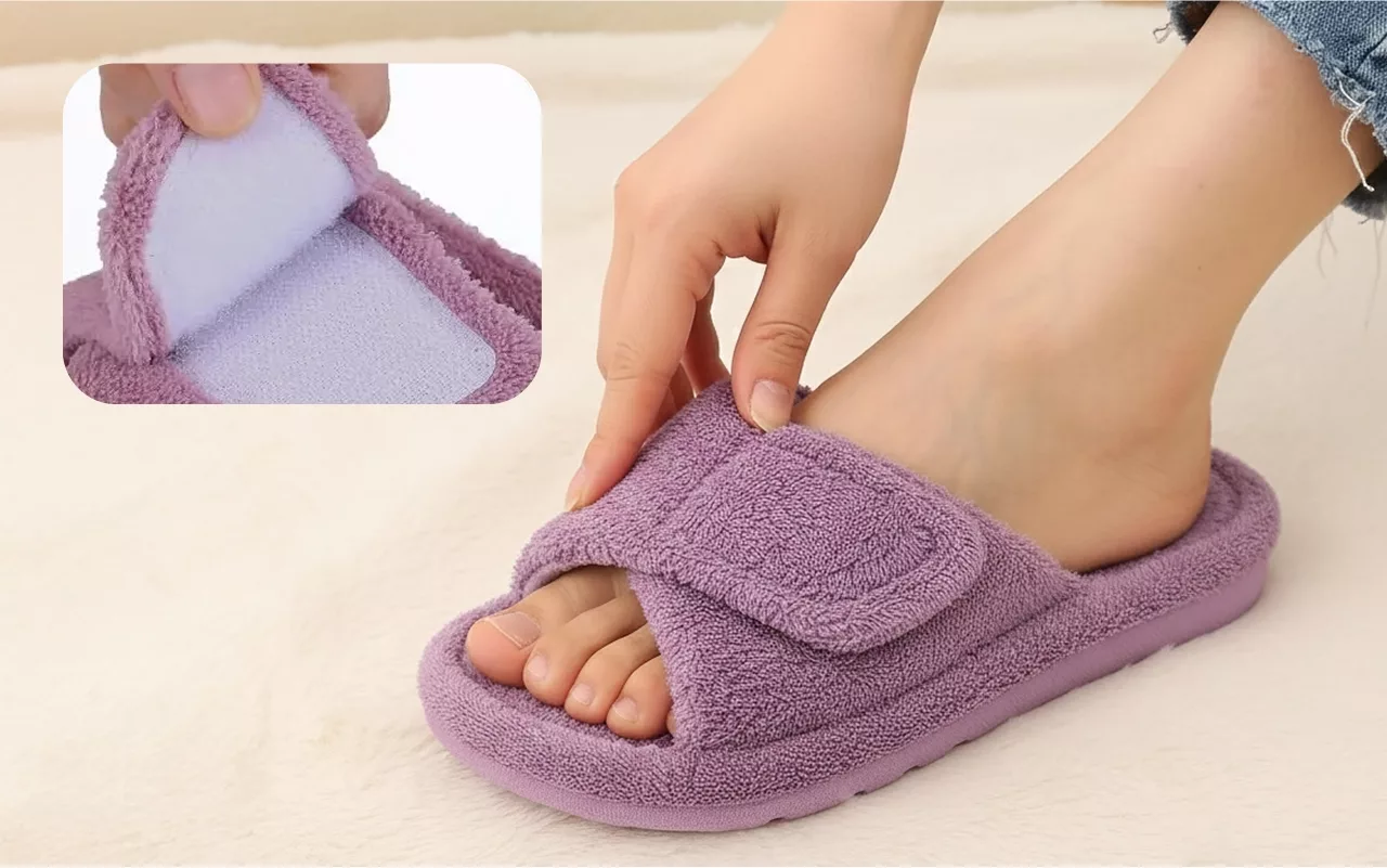 So flauschig und bequem! Mit dem verstellbaren Riemen passen sie perfekt. Meine Füße können sich den ganzen Abend entspannen, egal zu welcher Jahreszeit.