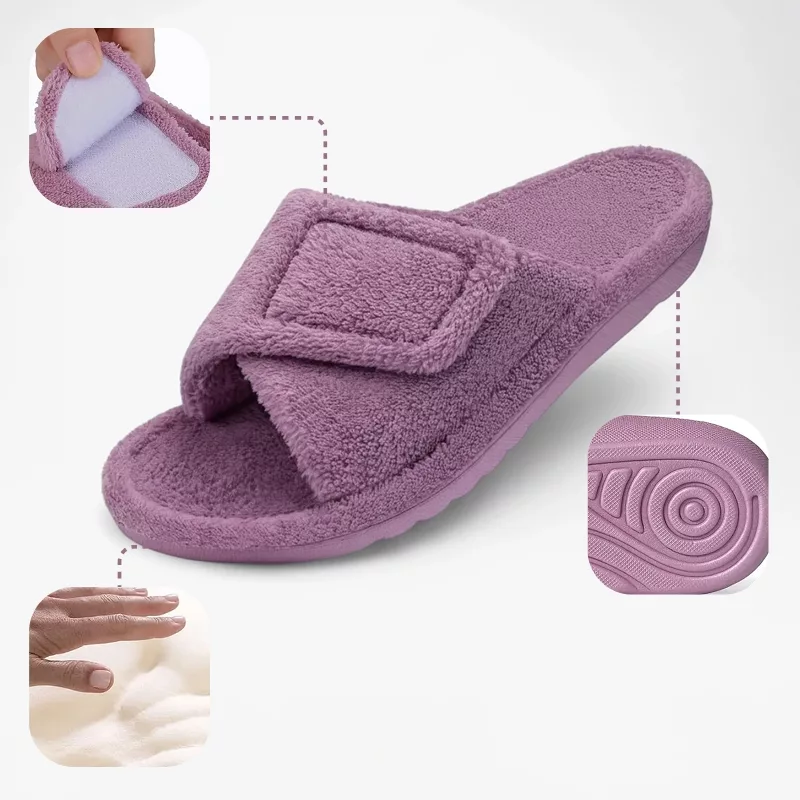 So flauschig und bequem! Mit dem verstellbaren Riemen passen sie perfekt. Meine Füße können sich den ganzen Abend entspannen, egal zu welcher Jahreszeit.