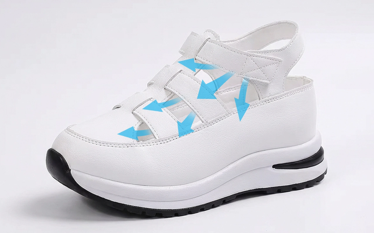 Offene Seiten lassen Ihre Haut auch an warmen Nachmittagen atmen. Die Füße bleiben während des täglichen Tragens kühl, trocken und frei von Irritationen.