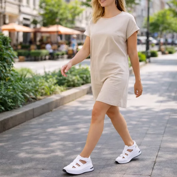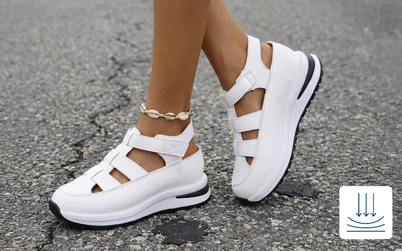 Jeder Schritt fühlt sich weich an, dank dicker Sohlen unter den Füßen. Ihre Gelenke bleiben sowohl bei langen Spaziergängen als auch bei schnellen Erledigungen geschützt.