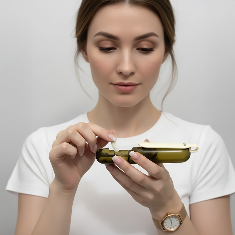 Diese kleine Box macht meine Morgen so viel einfacher. Kein Streit mehr mit festsitzenden Tabletten, einfach einmal drücken und ich bin bereit. Super praktisch und hält alles ordentlich.