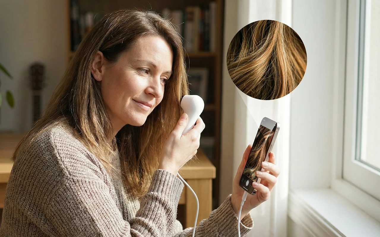 Ich hätte nicht gedacht, dass ich so oft einen Hautanalysator zu Hause benutze. Fühlt sich robust an und hilft mir, Veränderungen auf der Kopfhaut im Blick zu behalten.