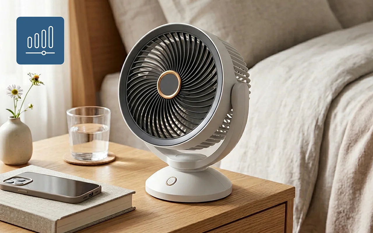 Ich bin geräuschempfindlich, aber dieser Schreibtischventilator ist ruhig und gleichmäßig. Er liefert genau genug Luft, damit ich auf dem Sofa lesen kann, ohne von der Hitze schläfrig zu werden.