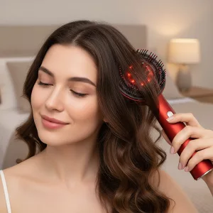 Diese Rotlichtbürste verteilt Flüssigkeit auf der Kopfhaut. Jede Anwendung sorgt dafür, dass Haarpflegeprodukte dorthin gelangen, wo sie benötigt werden.