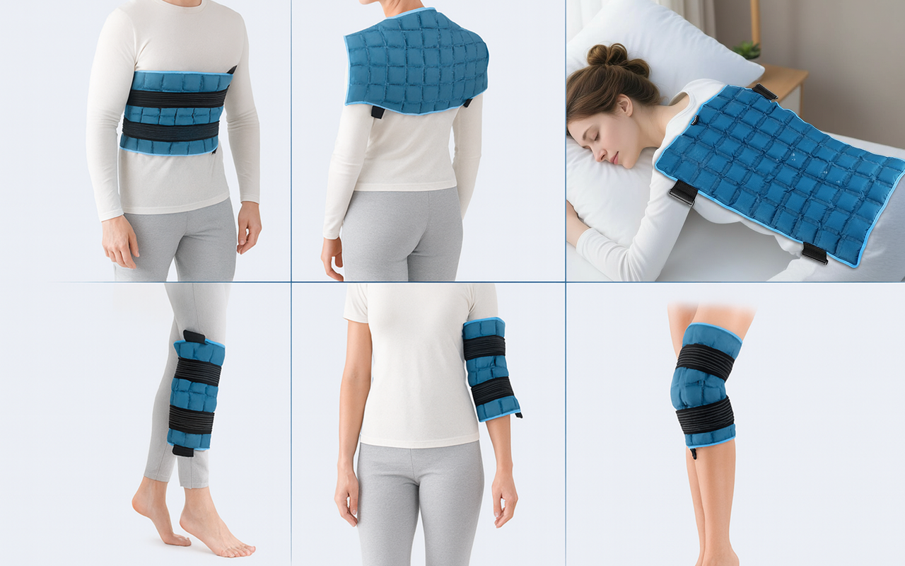 An Knien, Schultern, Nacken oder Hüften problemlos verwendbar. Die flexible Form und die Befestigungen passen sich schnell für gezielte Schmerzlinderung an.