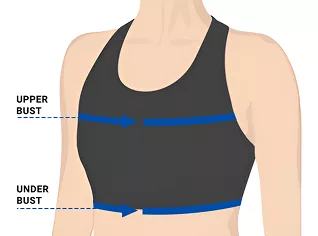 - 2. Um den Unterbrustumfang zu ermitteln, legen Sie das Maßband direkt und gleichmäßig unterhalb Ihrer Brust um Ihren Brustkorb.