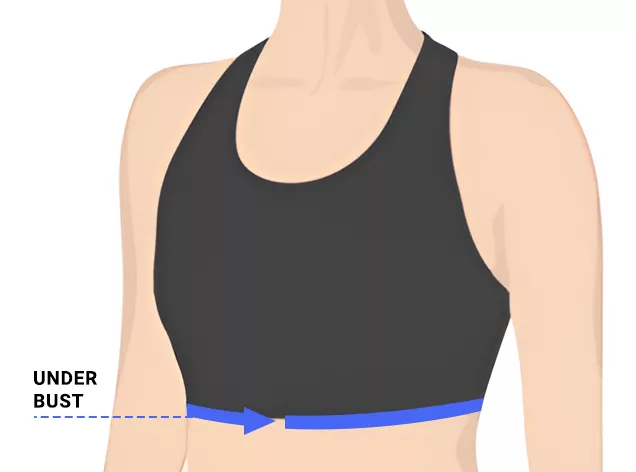 - 2. Um den Unterbrustumfang zu ermitteln, legen Sie das Maßband direkt und gleichmäßig unter Ihrer Brust um Ihren Brustkorb.