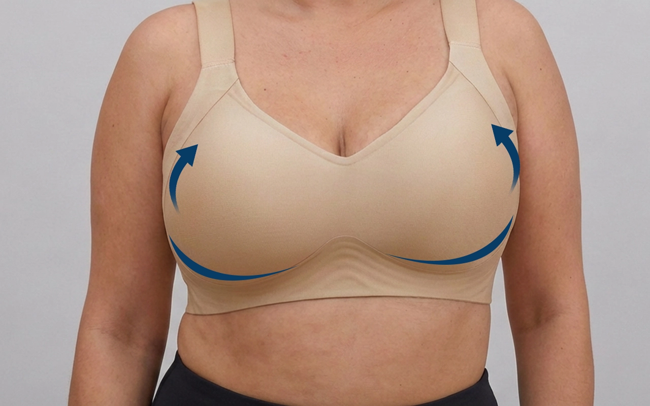 - 1. Tragen Sie vor Beginn einen ungefütterten BH, der Ihre natürliche Form unterstützt – kein Bralette oder gepolsterter BH.