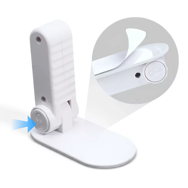 Der versteckte Knopf verhindert ein einfaches Entsperren durch kleine Kinder. Eltern können sich entspannen, da die Kleinen den Raum nicht allein verlassen können.