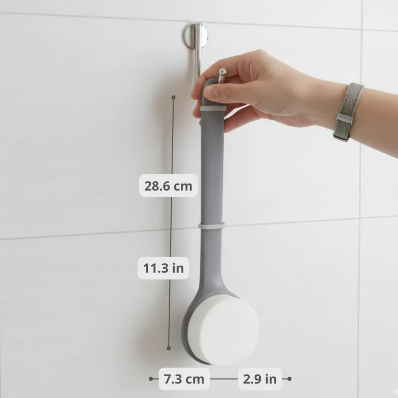 Sehr zufrieden mit dieser Rückenhilfe. Ich mag das schlichte Design und sie trocknet nach der Benutzung schnell. Perfekt für die tägliche Routine.