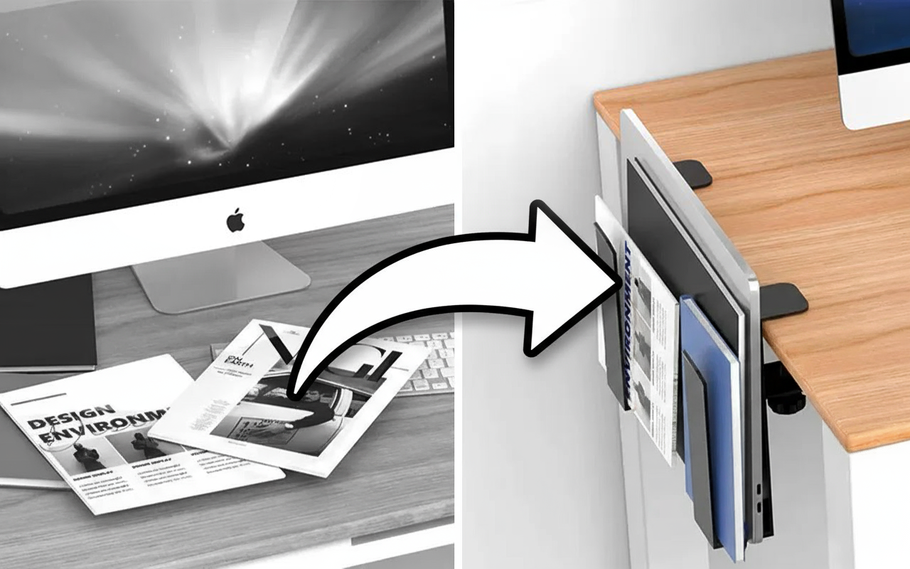 Ich liebe es, dass mein Schreibtisch endlich sauber aussieht statt vollgestellt. Dieser kleine Seitenständer sorgt dafür, dass alles den ganzen Tag ordentlich aussieht.