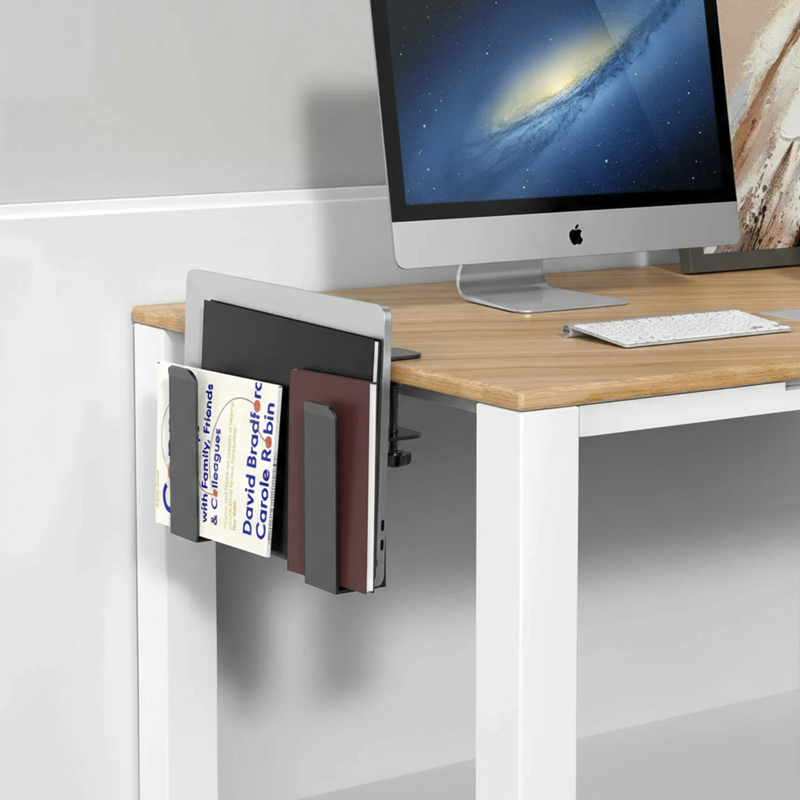 Reduzieren Sie Unordnung schnell mit einem intelligenten Halter neben Ihrem Schreibtisch. Genießen Sie mehr Platz zum Arbeiten, Tippen oder Schreiben ohne Ablenkungen.