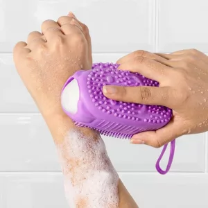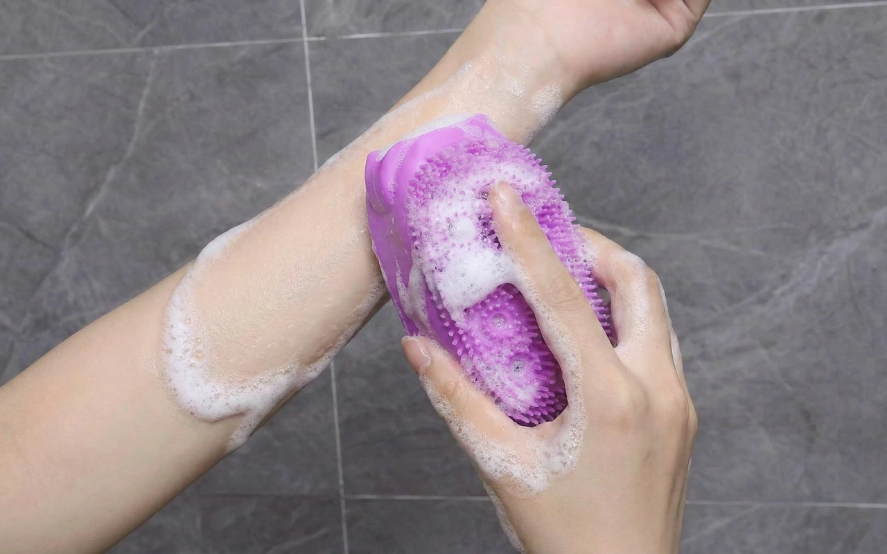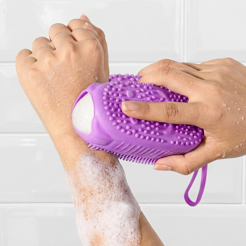 Der Silikon-Schrubber ist so weich, aber macht meine Haut super glatt. Ich liebe, wie einfach er zu reinigen ist und wie schnell er trocknet.