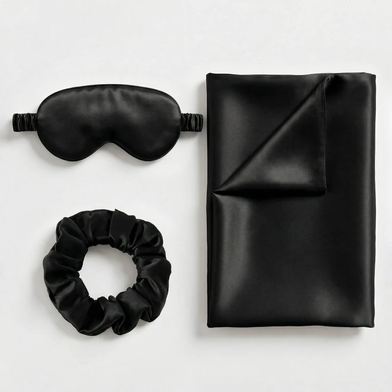Ich habe mir das Seidenset nach Nachtschichten gegönnt. Der kühle Stoff hilft mir, tagsüber zu schlafen, und der Scrunchie hinterlässt keine Delle in meinen Haaren.