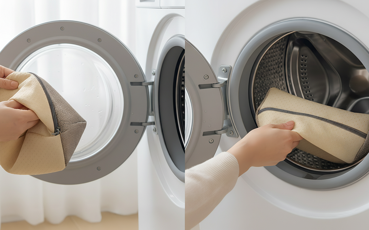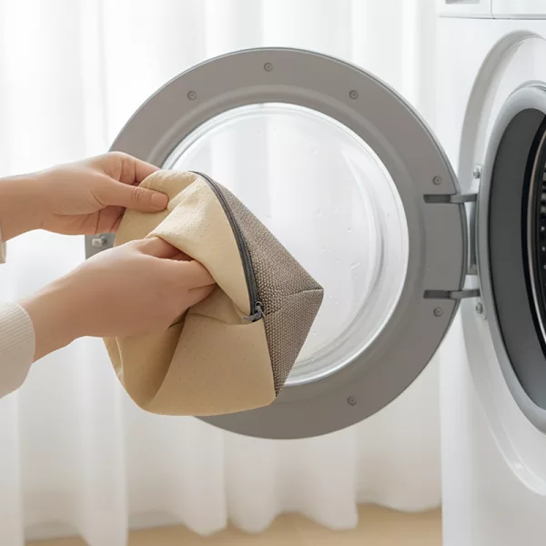 Ein versteckter Reißverschluss ermöglicht das Abnehmen des Bezugs zum Waschen. Für frische und saubere Kissen genügt eine einfache Wäsche.
