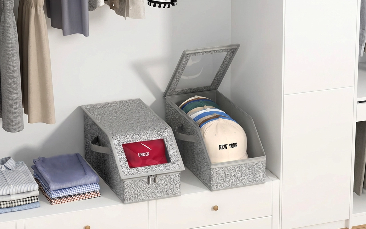 Ich liebe es, dass ich sehen kann, was drin ist, ohne etwas zu öffnen. Meine Hüte bleiben staubfrei und sauber, und ich habe mehr Platz für weitere Sachen im Regal.