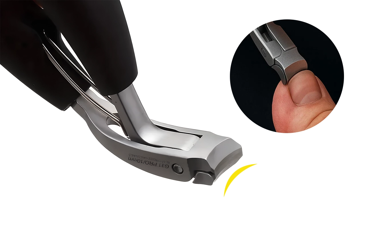 Größere Nägel passen mühelos hinein, sodass jeder Schnitt ganz einfach ist. Kein Quetschen oder unbequeme Bewegungen mehr bei den Fußnägeln.
