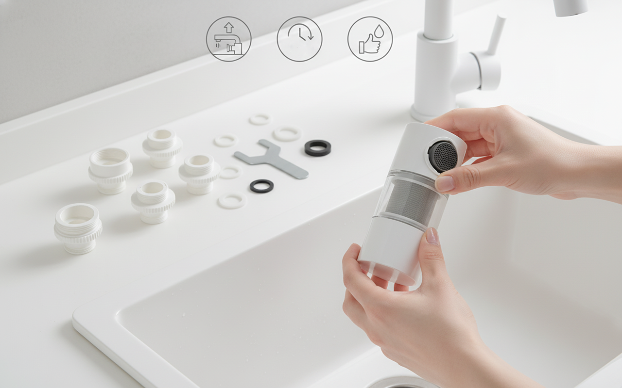 Genießen Sie täglich frisches Trinkwasser zu Hause oder am Arbeitsplatz. Der Edelstahlsfilter von Ortorex entfernt unerwünschte Partikel aus jedem Tropfen. Kein Bedarf an Flaschenwasser oder teuren Systemen. Schnell zu installieren, passt auf die meisten Küchen- oder Badezimmerarmaturen.