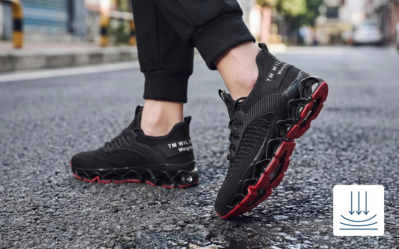 Weiche Dämpfung schützt die Füße und absorbiert Stöße schnell. Bleiben Sie bei Spaziergängen, Workouts oder einem aktiven Tag gut unterstützt.