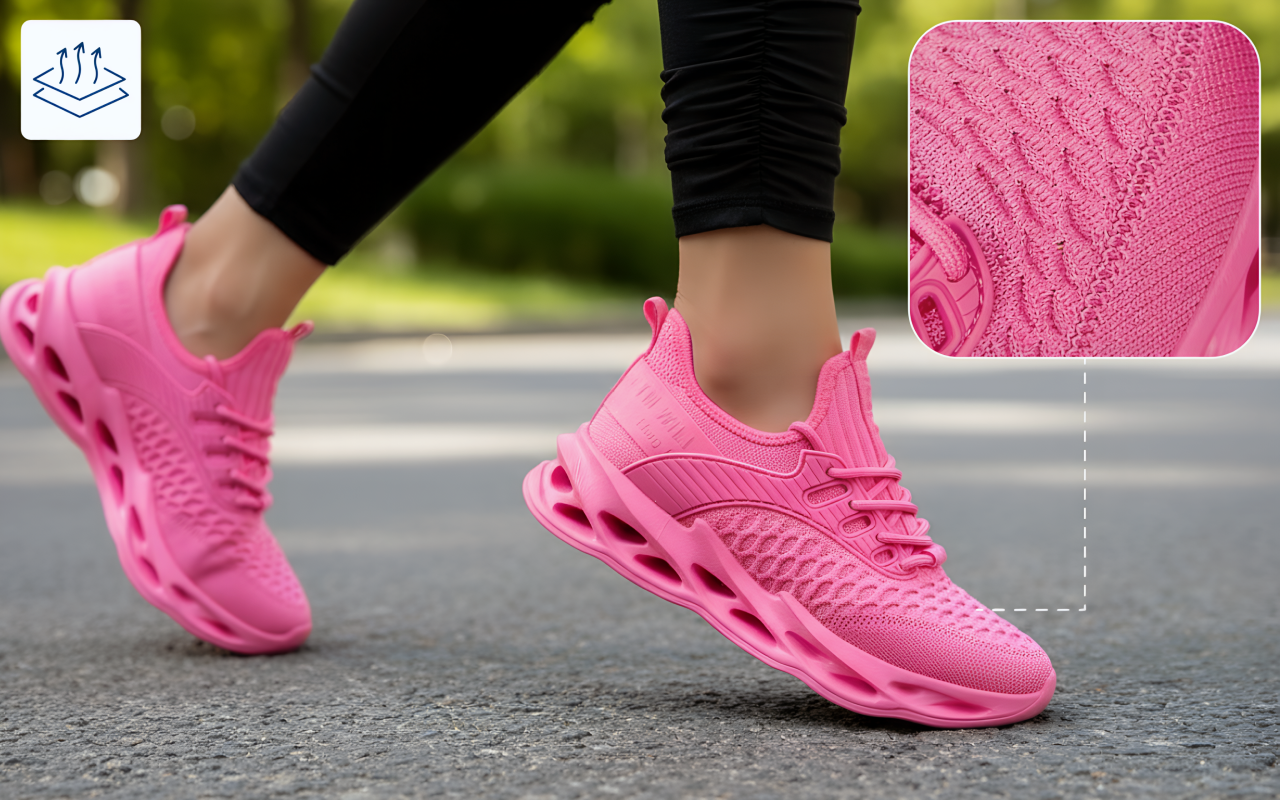 Das Obermaterial aus Mesh hält die Haut trocken und frisch. Verabschieden Sie sich von unangenehmem Schwitzen an hektischen Tagen.