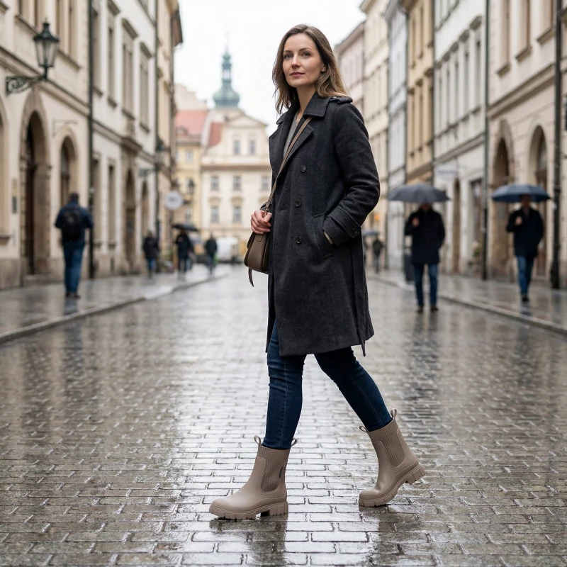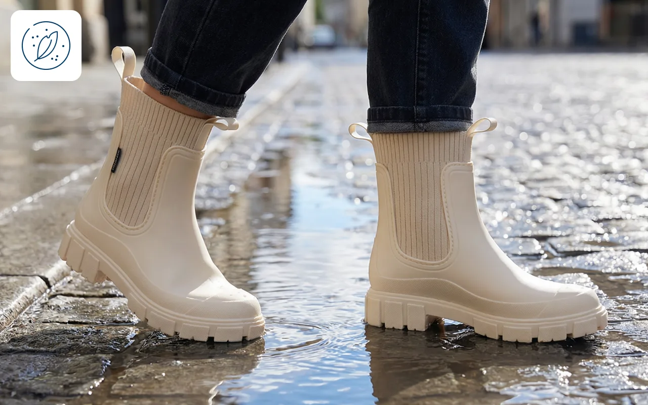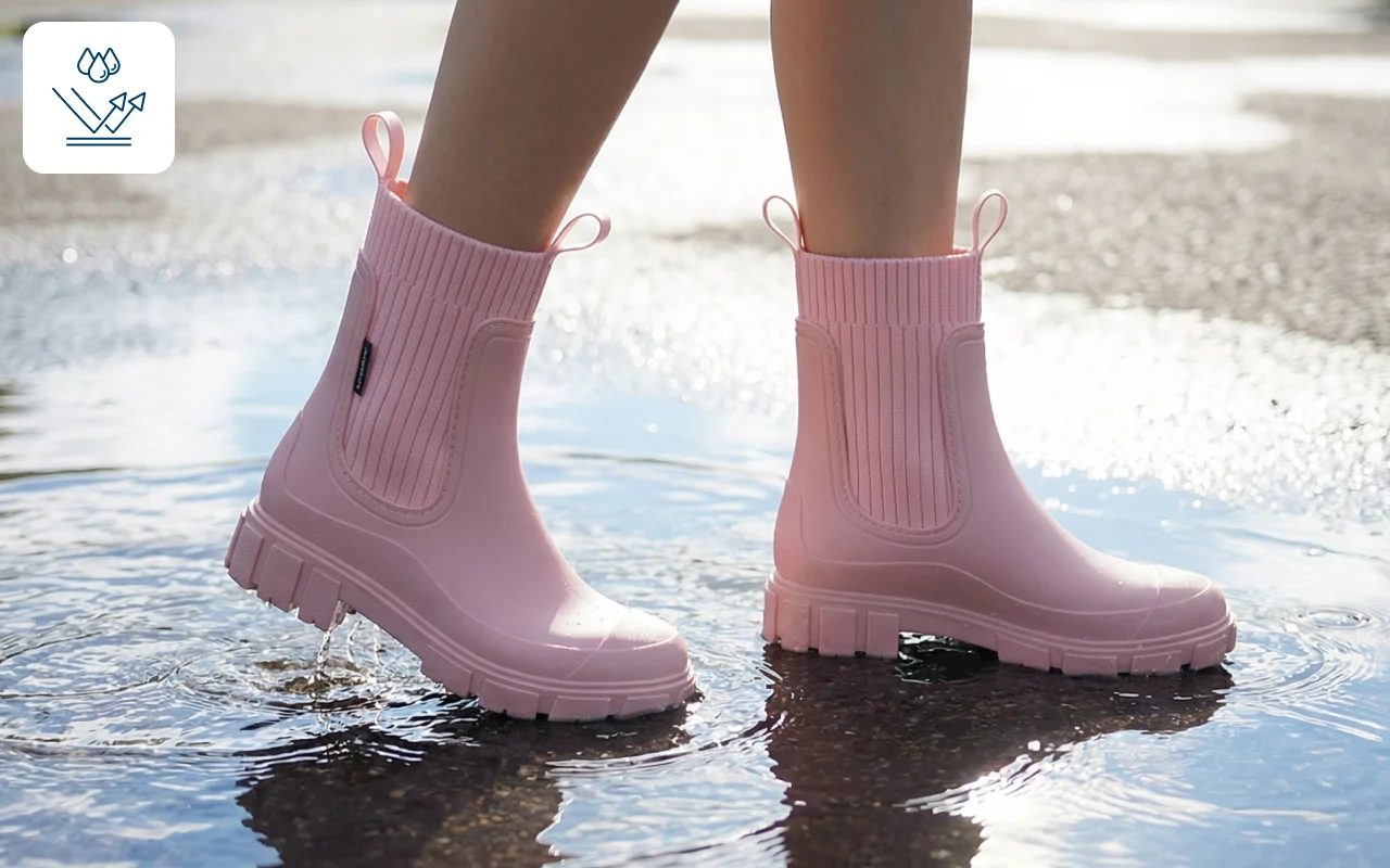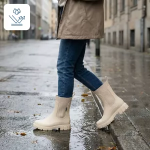 Regen bleibt draußen, während Ihre Füße warm und frisch bleiben. Gehen Sie durch die Stadt, selbst wenn die Straßen voller Pfützen sind.