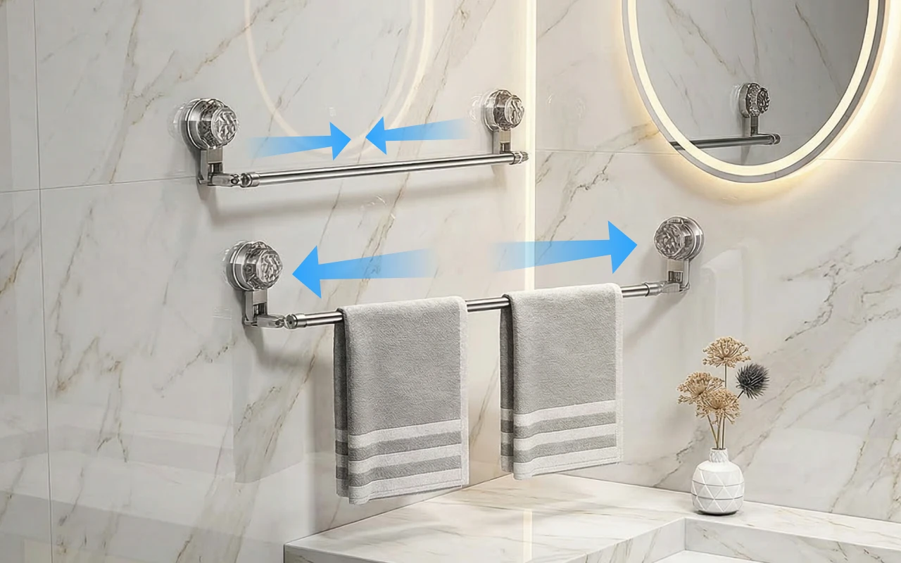 Habe das für unser winziges Ensuite-Bad gekauft. Die Stange lässt sich an den Wandabstand anpassen, und die Saugnäpfe haften stärker am Glas, als ich erwartet hatte.