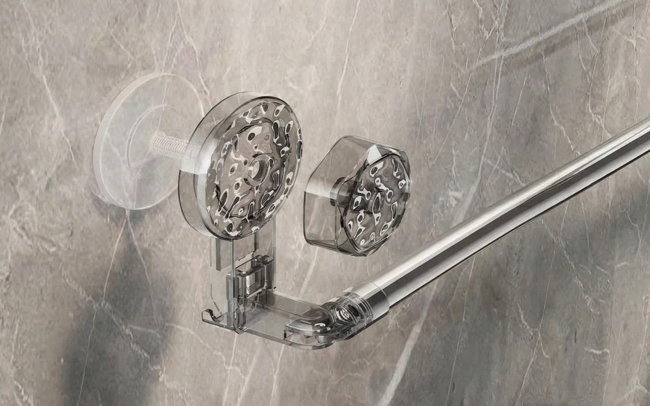 Nehmen Sie die Schiene in Sekundenschnelle ab, um sie gründlich zu reinigen. Saugnäpfe erhalten ihre Haftkraft nach dem Waschen und Trocknen zurück.