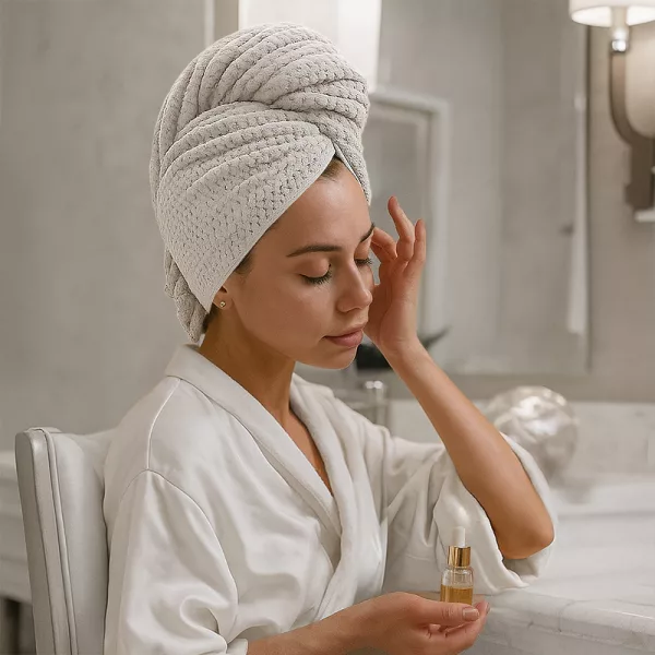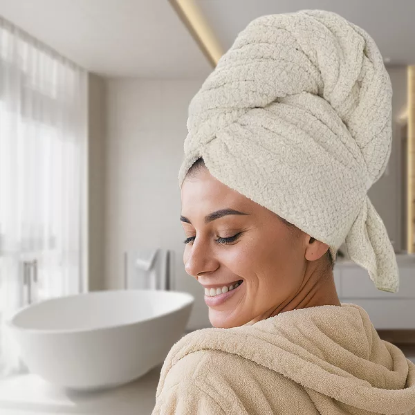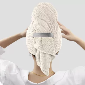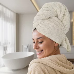Das Mikrofaser-Material ist fantastisch – sanft zu meinem Kopf und meine Haare trocknen super schnell! Keine nassen Stellen mehr oder schwere Handtücher, die herunterfallen. Ich würde nie mehr zurückwechseln.