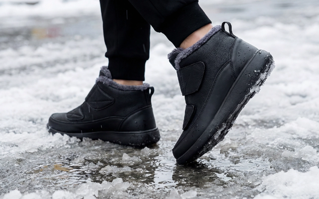 Das Gleichgewicht fühlt sich auf rutschigen oder unebenen Oberflächen stabiler an. Die rutschfeste Sohle verbessert die Bodenhaftung und verringert das Risiko von Ausrutschern bei Winterspaziergängen.