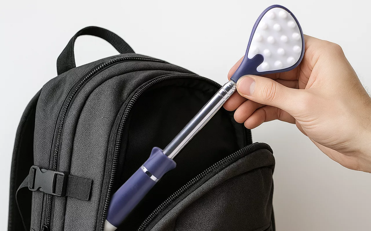 Ich nehme den Rückenkratzer im Rucksack mit zur Schule. Meine Freunde finden ihn cool, und dass der Griff die Größe ändert, ist wirklich clever.